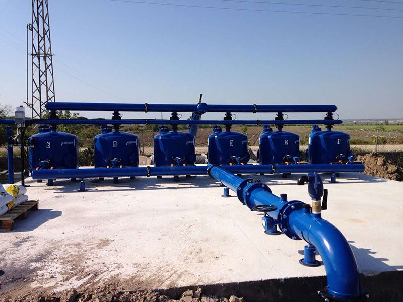 以色列ELI自清洗过滤砂滤器,采用全自动时间与压差反冲洗模式,广泛用于农业过滹与工业用水过滤。过滤流程是:水通过特殊设计的布水器,以接近平流的状态到达过滤器内的填料层,通过砂石介质层孔隙向下运行渗透,杂质被截留在砂石介质层上部。过滤后的净水经过过滤器底部蘑菇状的集水器,将过滤后的水均匀地收集并流出。随着杂质在填料层中的不断聚积,水头损失将不断增大。当水头损失到达一定的设定限度时,或者经过一个预先设定好的时间段后,系统将自动转换至反洗状态,以清洗聚积起来的杂质;当系统处于反洗状态时,某个过滤罐会将干净的、经过过滤的水通过一个三通反洗阀逆流入这个过滤罐中。在这个逆流过程中,被反洗的过滤罐的填料层在水流的冲击下被冲起,杂质则通过一个三通的排污口被排出。在反洗过程中,集水器使填料层在反洗状态时形成内环流,填料之间互相搓洗,提高反冲洗效率,同时反洗时不跑砂。当反洗结束时,进、排水三通阀又回复到过滤状态,下一个过滤罐则准备进入反洗状态。