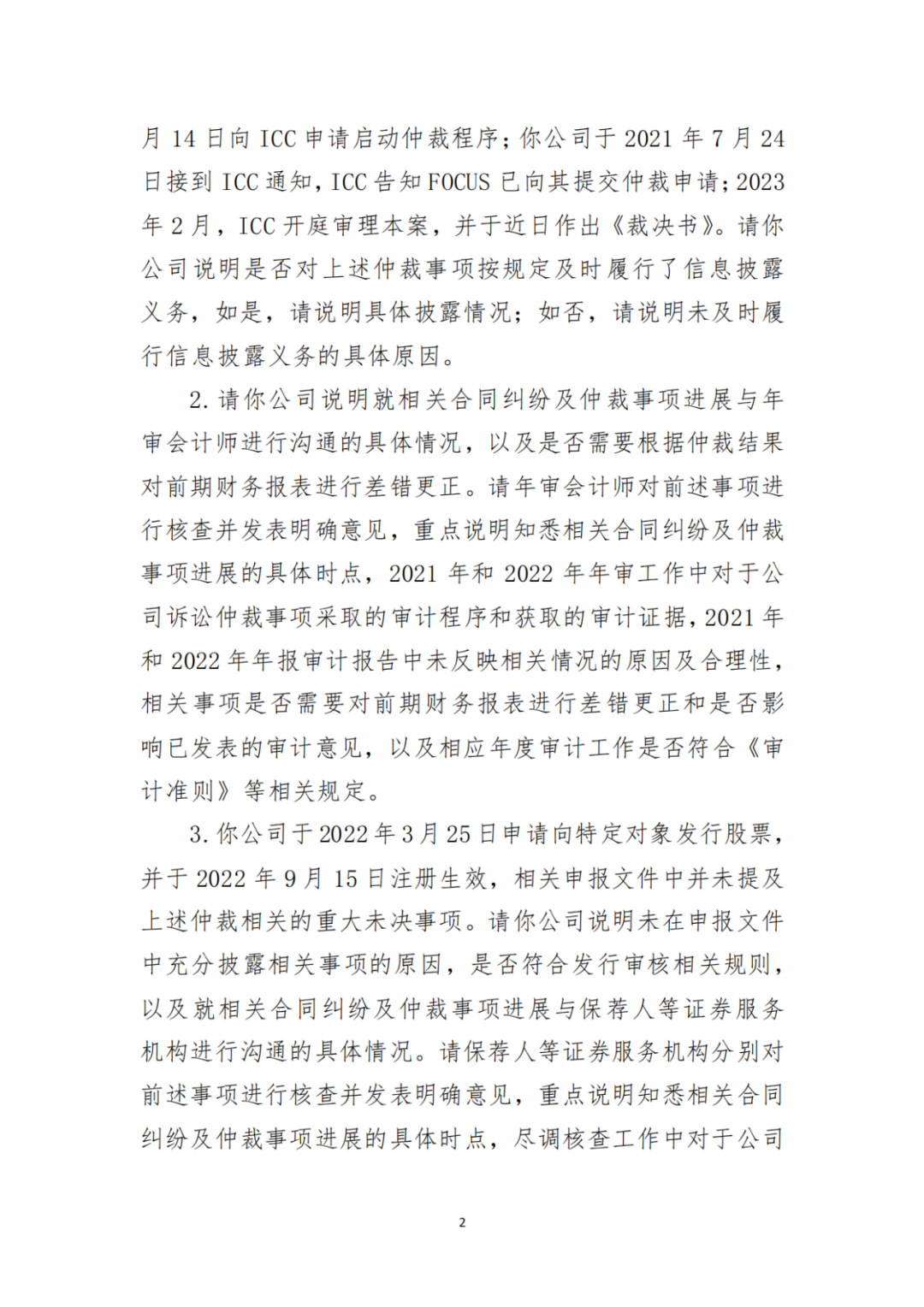 2021 年 7月 14 日,FOCUS 于向 ICC 申请启动仲裁程序;